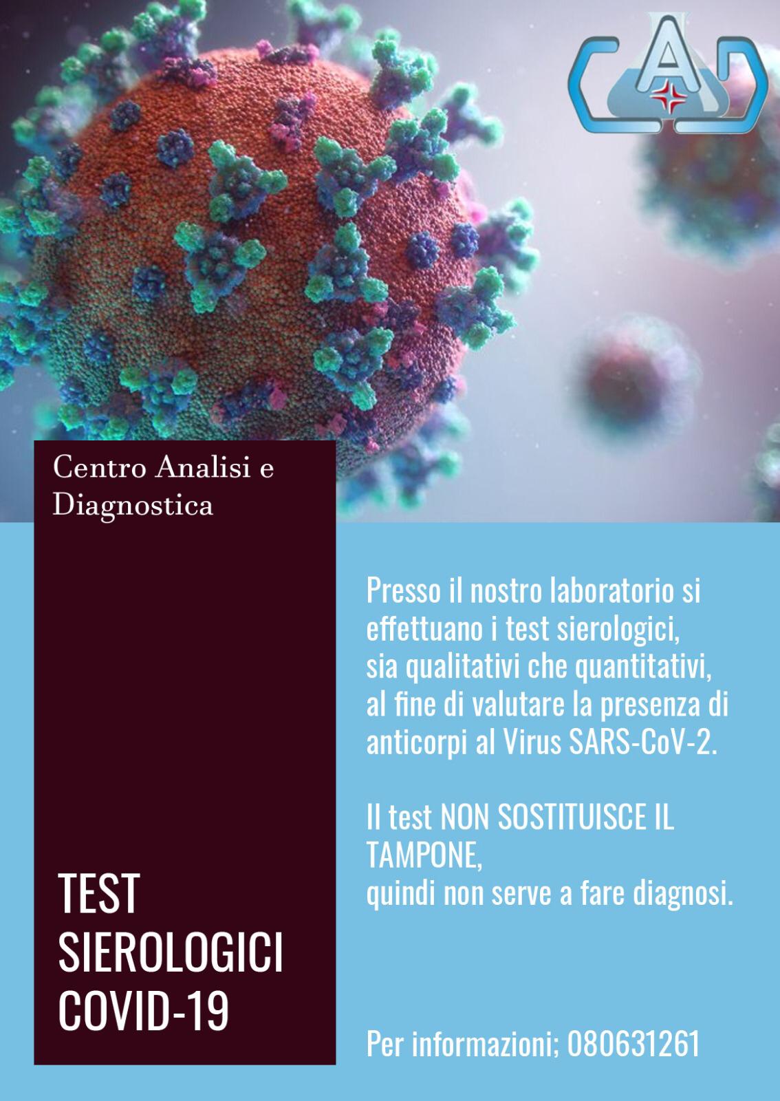 CAD – Centro Analisi e Diagnostica da oltre un decennio opera quale laboratorio di analisi regolarmente accreditato presso la Regione Puglia con il numero di convenzione 676022; dopo vari trasferimenti di proprietà, dal 15 marzo 2016 la società è stata acquisita interamente da “Giba Lab Srls”, con sede in Triggiano (BA) al Viale Aldo Moro n.78